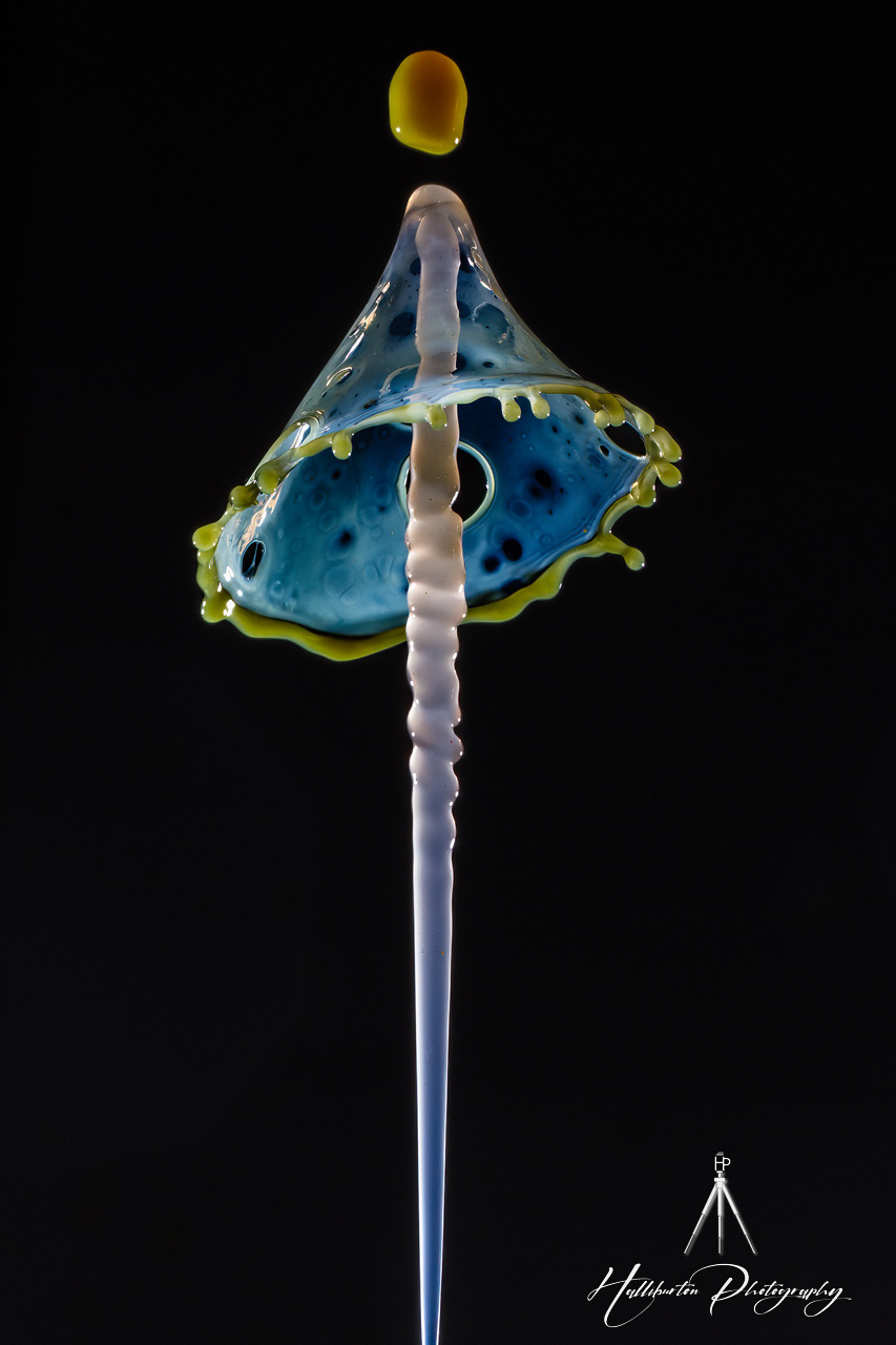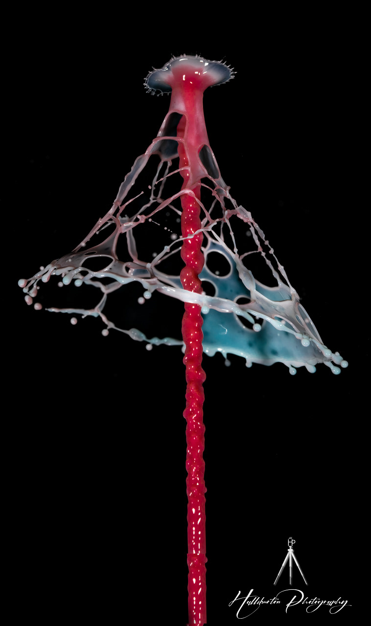 Experience unique high-speed liquid art photography by David Halliburton, capturing colourful water collisions and abstract forms in striking detail.